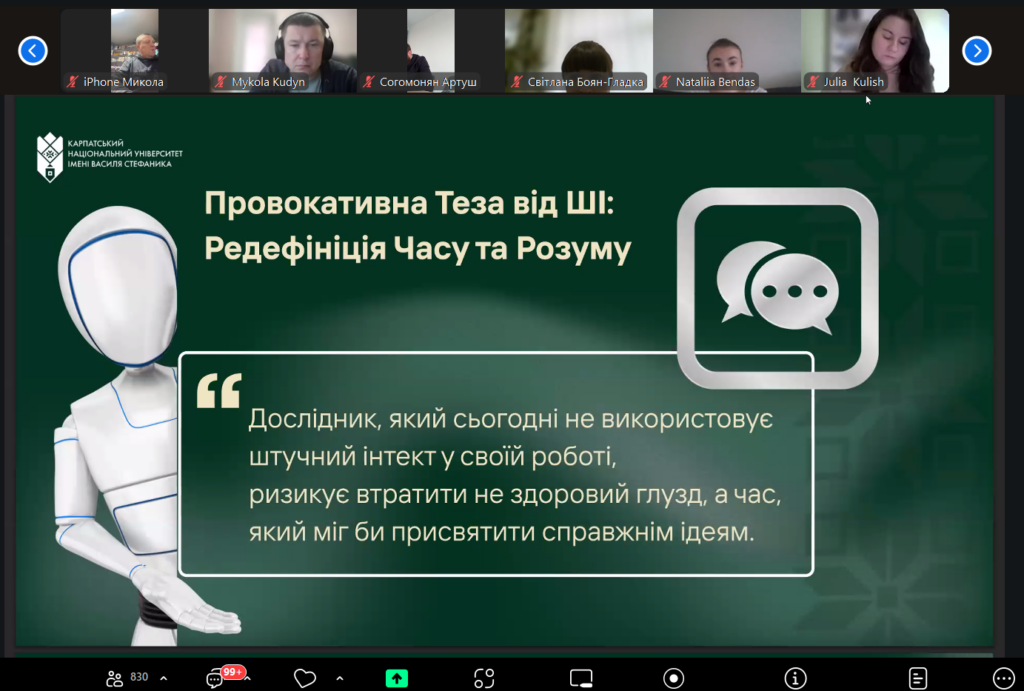 Під час обговорення учасники дійшли спільного висновку, що штучний інтелект може бути ефективним інструментом для дослідника за умови його доброчесного та відповідального використання.