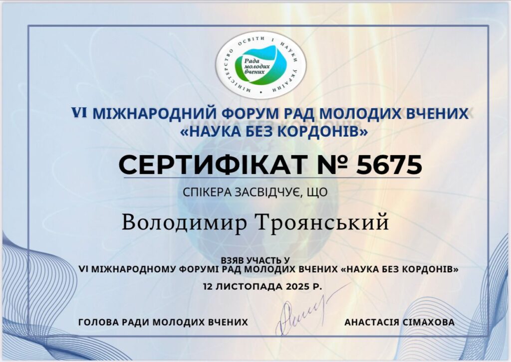 Володимир Троянський, директор астрономічної дослідної станції КНУВС, представив доповідь на тему «Обсерваторія на горі Піп Іван: простір досліджень, співпраці та міжнародних можливостей для молодих учених». У своїй доповіді він висвітлив потенціал високогірної обсерваторії на горі Піп Іван як платформи для наукових досліджень, міжнародної співпраці та залучення молодих учених до міждисциплінарних проєктів;
