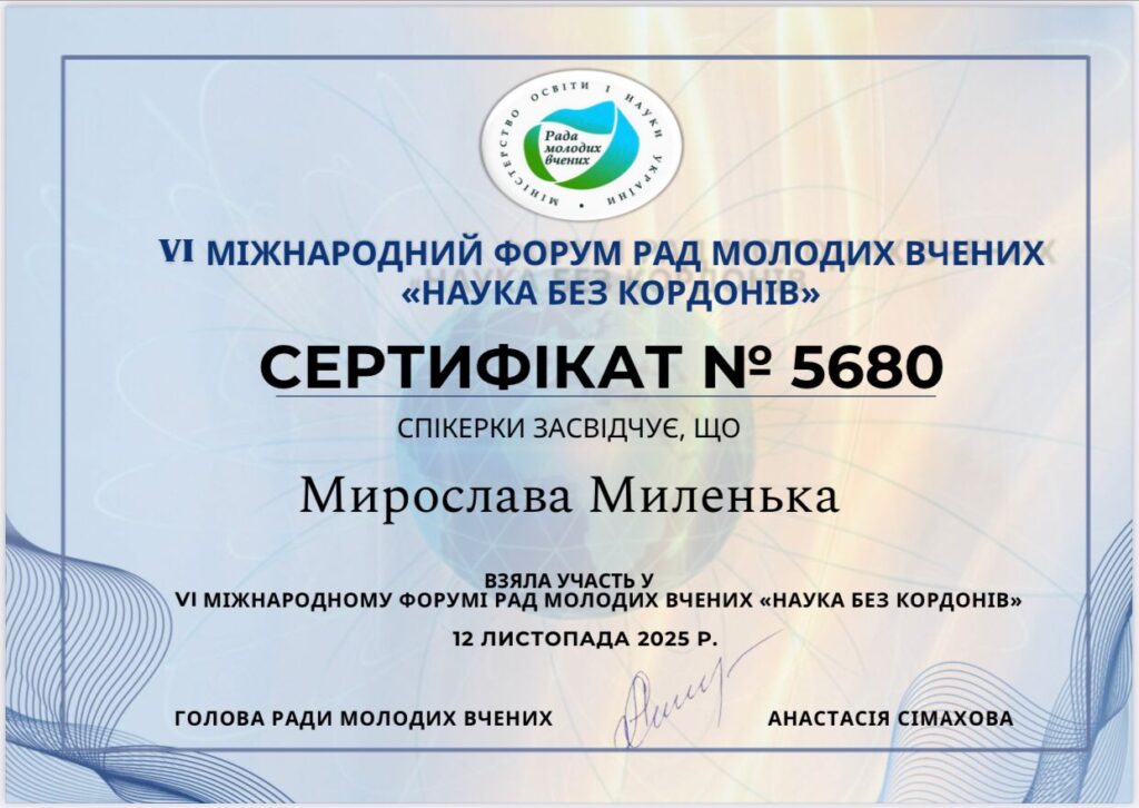 Мирослава Миленька, директорка Міжнародного навчально-наукового центру «Обсерваторія» КНУВС, виступила з доповіддю «Дослідницький потенціал Міжнародного навчально-наукового центру “Обсерваторія” – інструмент розвитку й інтернаціоналізації молодіжної науки». Вона представила можливості Центру у сфері інтернаціоналізації науки, академічної мобільності та розвитку дослідницьких ініціатив молодих учених.