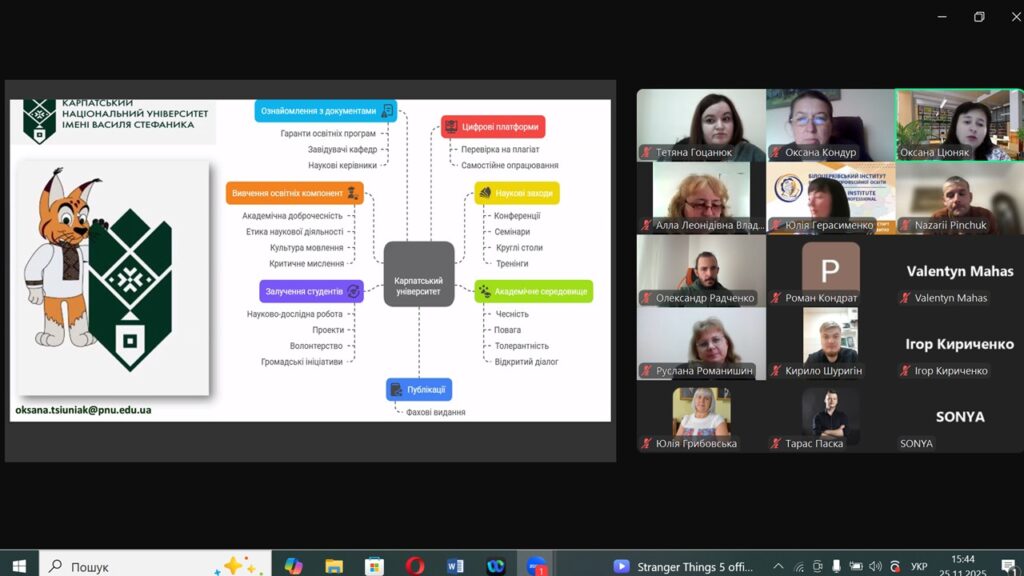 25 листопада 2025 року голова Ради з науково-дослідної роботи студентів, аспірантів і молодих вчених Карпатського національного університету імені Василя Стефаника Тарас Паска, доктор філософії, асистент кафедри педагогіки та освітнього менеджменту імені Богдана Ступарика, взяв участь у Всеукраїнському науково-методичному вебінарі «Академічна доброчесність: сучасний дискурс».